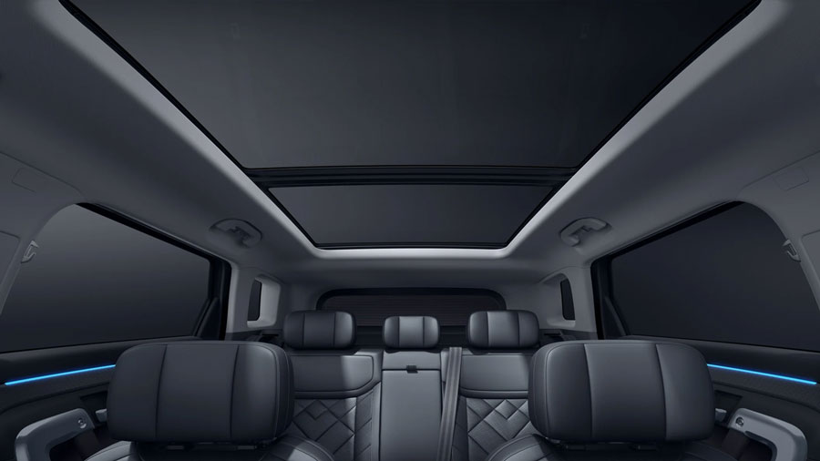 Cửa sổ trời toàn cảnh rộng 1.1m² sẽ mang ánh sáng tự nhiên tràn ngập khoang lái, tạo cảm giác thoáng rộng cho không gian nội thất vốn đã rộng rãi. Góp phần tăng cường sự thoải mái cho cả người lái và hành khách.